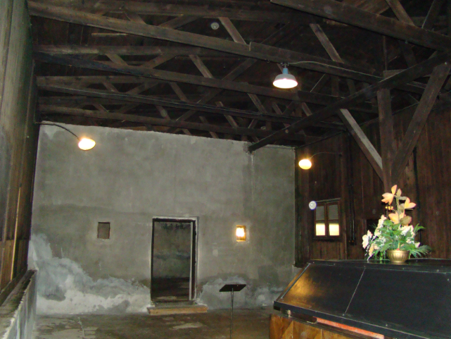 Here's a photograph taken in a similar position to the one above, on September 30, 2013; the current sign claims it was a "hall where the corpses were stored", and a place where executions frequently took place. No mentioned of how they were executed though.