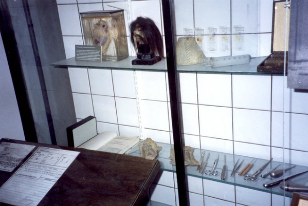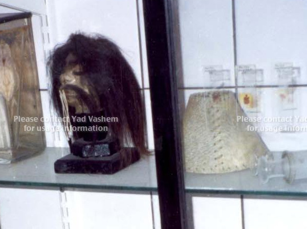 Below is a photo dated 1993 which I've taken from the Vad Vashem website. It shows the lampshade alongside a shrunken head in a display case at the Buchenwald memorial: