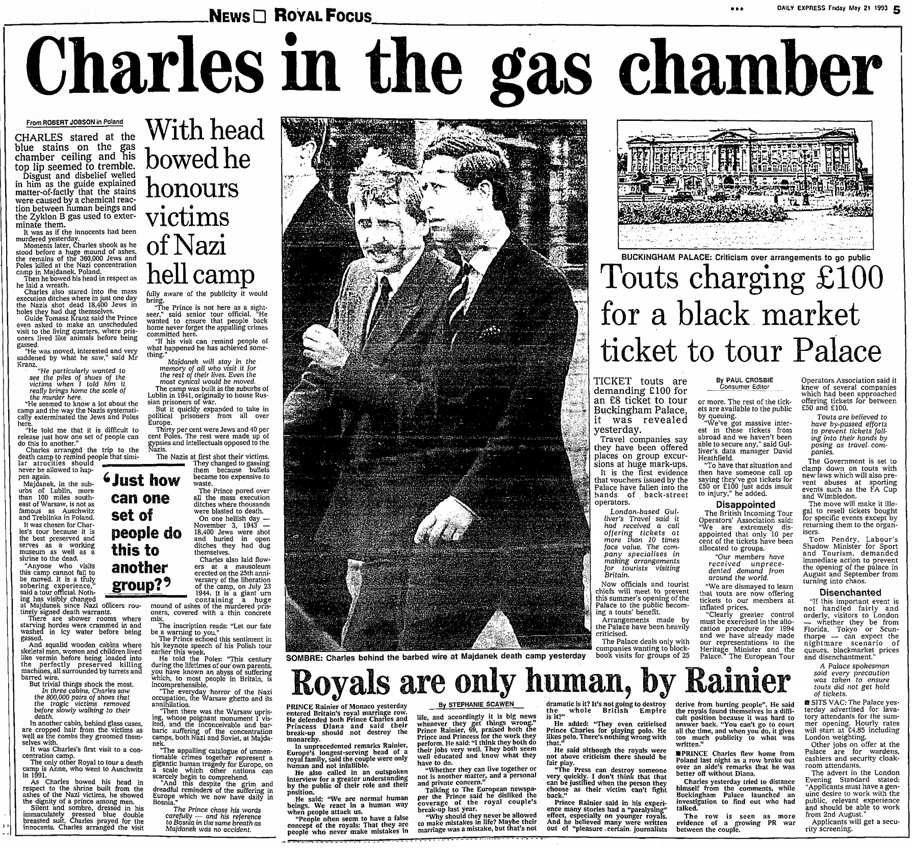On Thursday, May 20, 1993, the heir to British throne visited the former Nazi "extermination camp" Majdanek on the outskirts of the Polish city of Lublin and was given a tour by a youngish guide named Tomasz Kranz—who is now the Director of the Majdanek State Museum.
