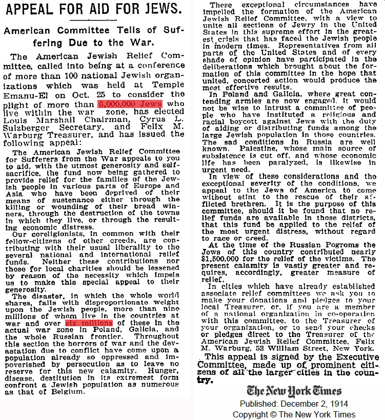 Felix M. Warburg, mega-banker, warned in 1914, 1919 and 1936; six million Jews are in peril