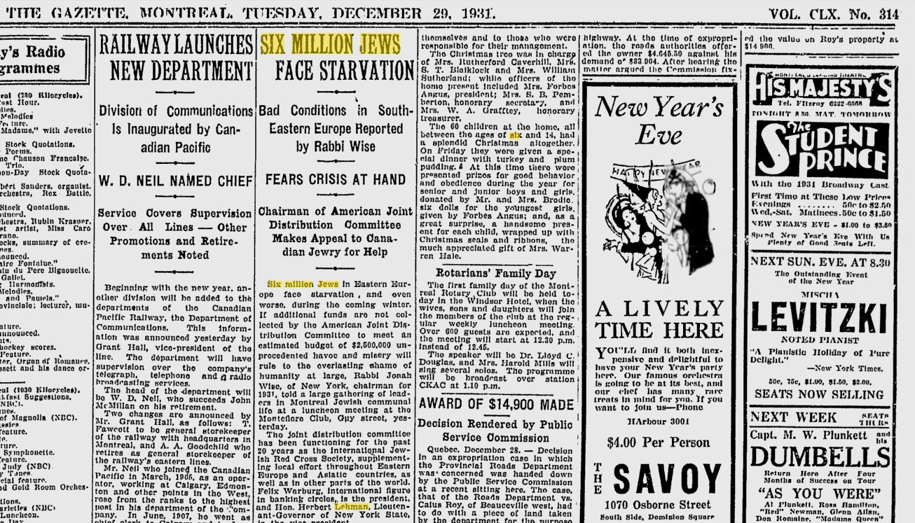 Herbert H. Lehman, Democrat, warned in 1931; six million Jews are in peril