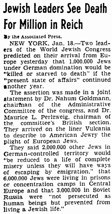 1940: 6,000,000 Jews in prisons or KZs says Zionist leaders