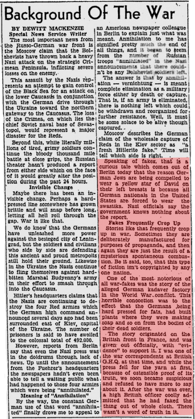 Brilliant article from September 1941, about the World War One propaganda lie, that Germans made people into soap;