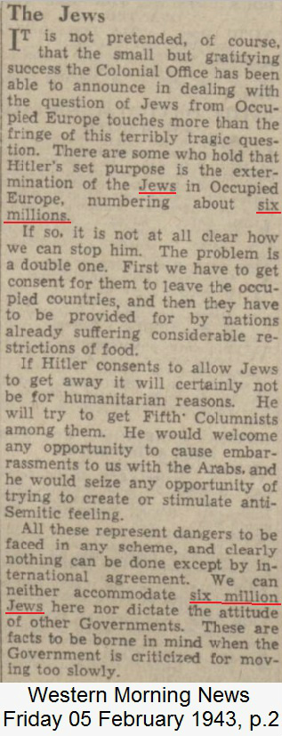 1943: Hitler's purpose; kill 6,000,000 Jews