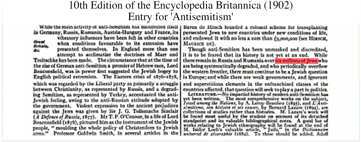 6,000,000 figure of Jews in the 1902 Encyclopaedia Britannica