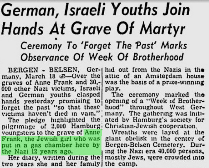 Anne Frank gassed at Belsen... erm Auschwitz?