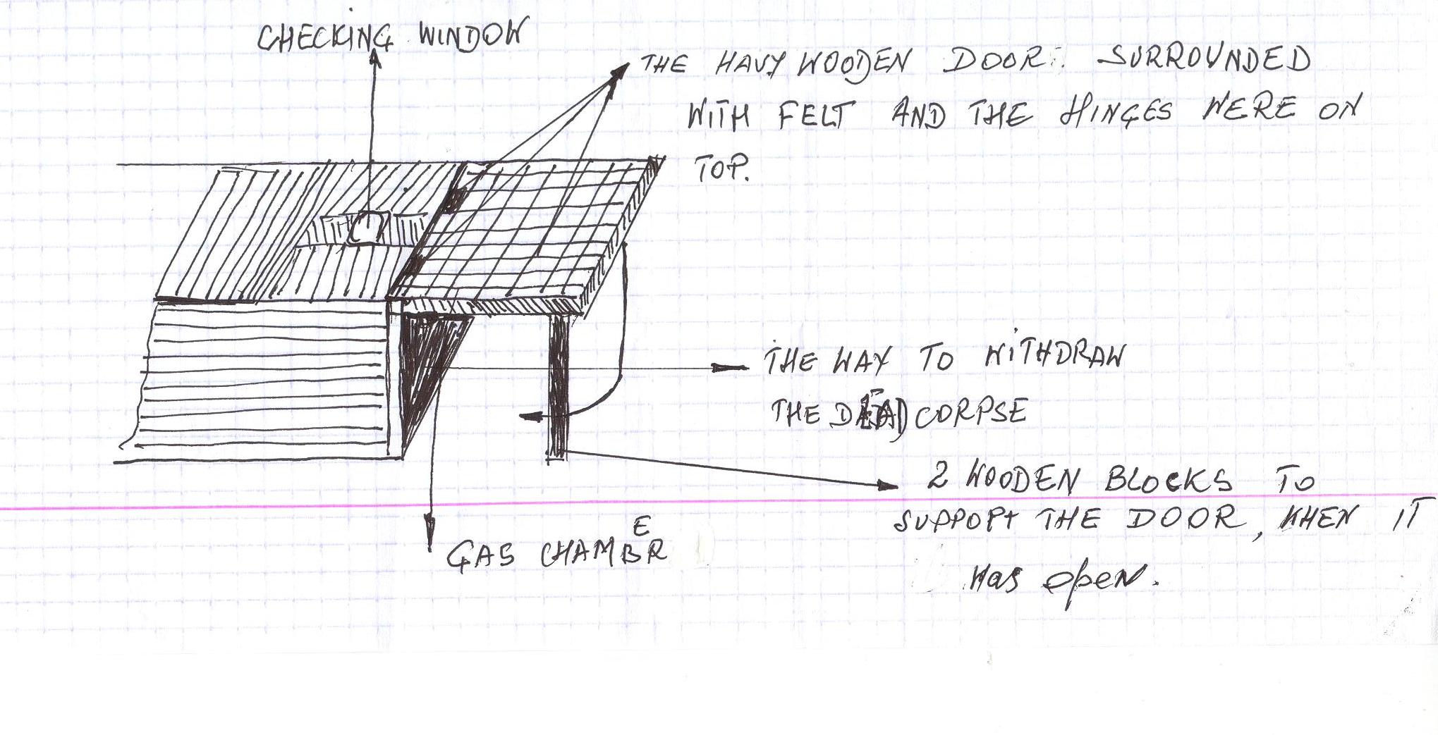 Eliyahu Rosenberg was an alleged survivor of 'Death Camp': Treblinka. This is his sketch of the gas chamber at Treblinka. Good isn't it?