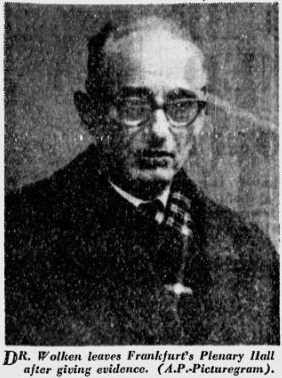 Austrian Dr. Otto Wolken was forced to care for inmates in Auschwitz's quarantine section, he's pictured above after giving evidence at the 1963/4 Frankfurt Auschwitz trial of 22 former camp staff, but he also testified at the 1947 trial of former Auschwitz commandant Rudolph Hoess: