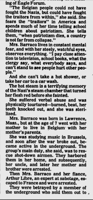 She was a French freedom fighter, until captured at 18 and sent to concentration camps in Belgium and France, where she was held prisoner for 16 months