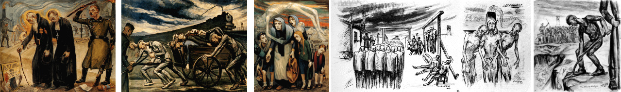 Soon after WW2 he created images of the process of the gassing & cremation of Jews at Auschwitz-Birkenau.