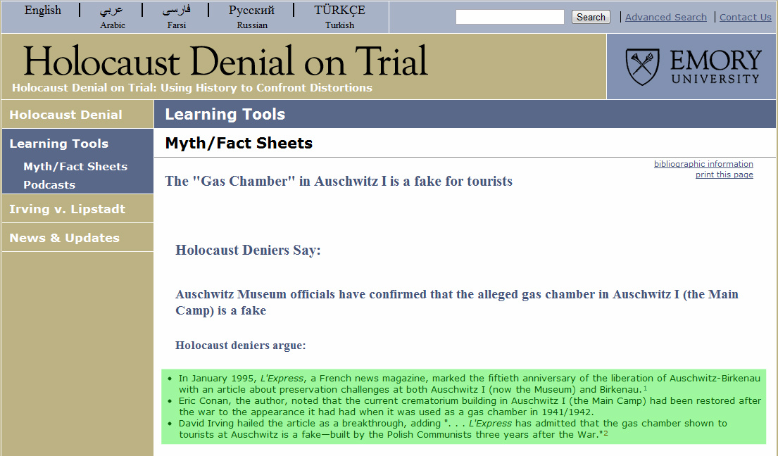 Nice early 'Auschwitz gas chamber fake' admittance