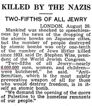 Zionist rabbi Stephen S. Wise was another Zionist claiming 6,000,000 Jews had been killed long before a Nazi "confessed" that this was the figure: