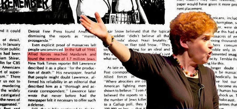 Lipstadt also supported the 4,000,000 figure for Auschwitz, claiming that a "minimum of 2 million" of the victims "were Jews." 10 Therefore, Professor Deborah Lipstadt can be proved to have claimed that a minimum of 3,700,000—around 62% of the 6,000,000 Jews killed in the Holocaust—were killed at just Auschwitz and Majdanek.