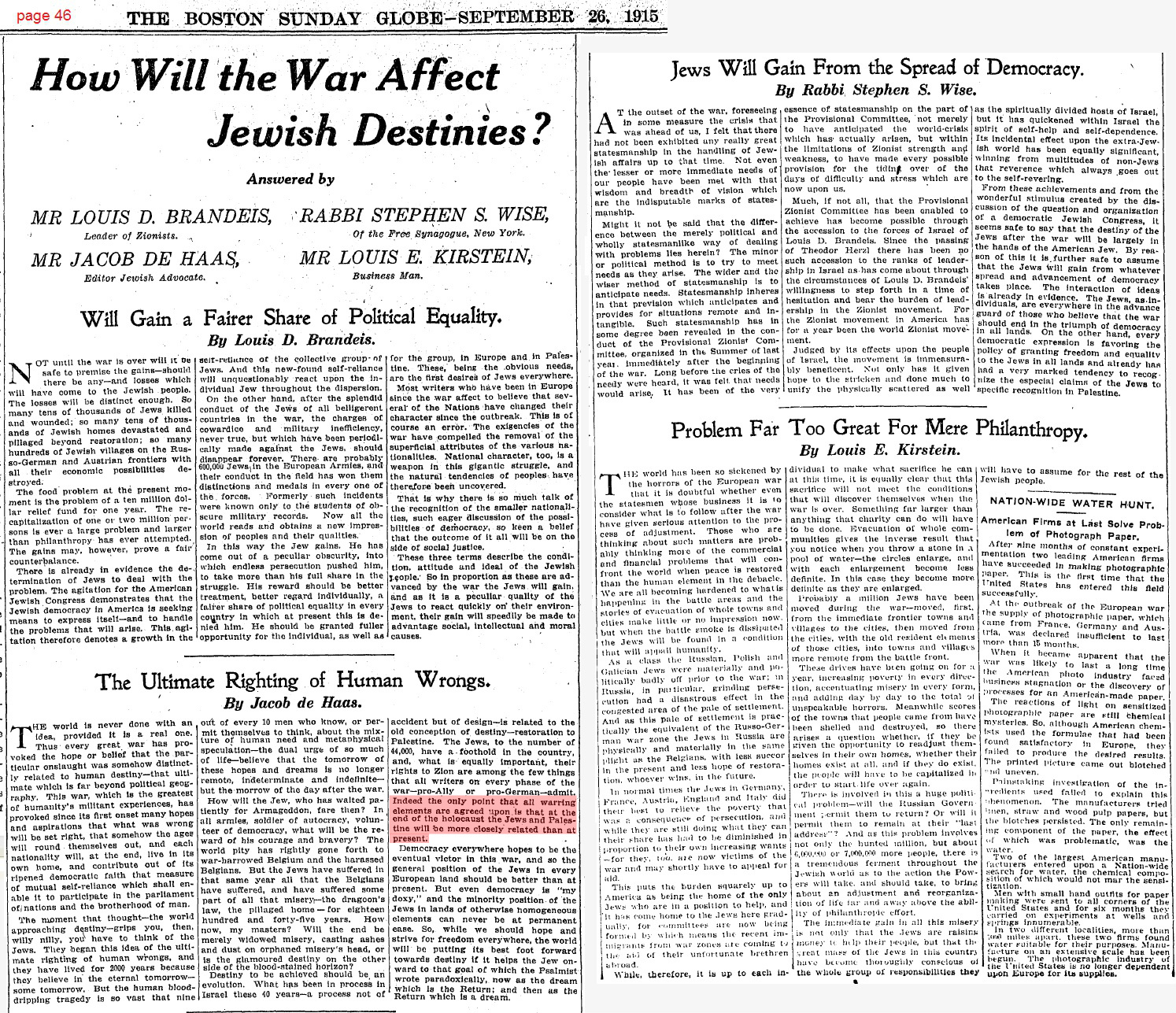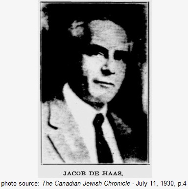 - Jacob de Haas, editor of the Jewish Advocate, and Zionist, The Boston Sunday Globe, September 26, 1915