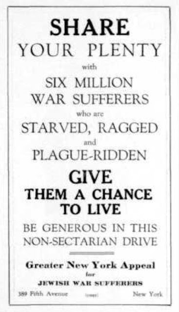 Above is the cover and an extract from a pamphlet apparently issued in 1921 for members of American Jewish Distribution Committee, filled with "Facts to Talk About" during public meetings. A pdf of the full pamphlet can be view here.
