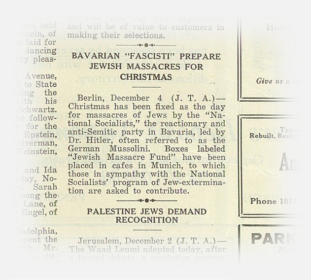 1922: Dr. Hitler to exterminate all the Jews, for Christmas