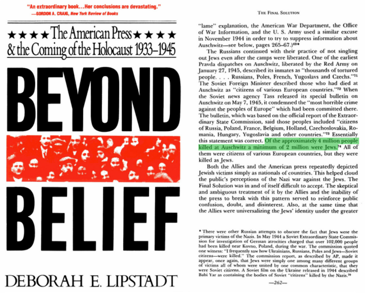 “Of the approximately 4 million people killed at Auschwitz a minimum of 2 million were Jews. All of them were citizens of various European countries, but they were killed as Jews.”
