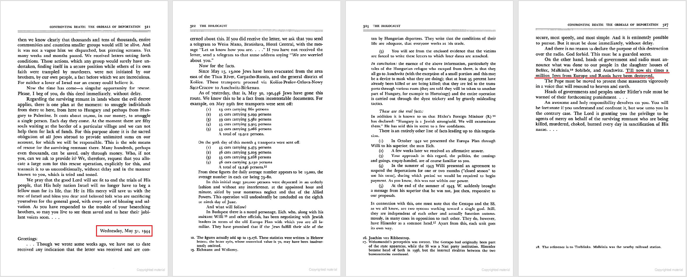 Slovakian Jew Michael Dov Wiessmandl wrote May 31, 1944: