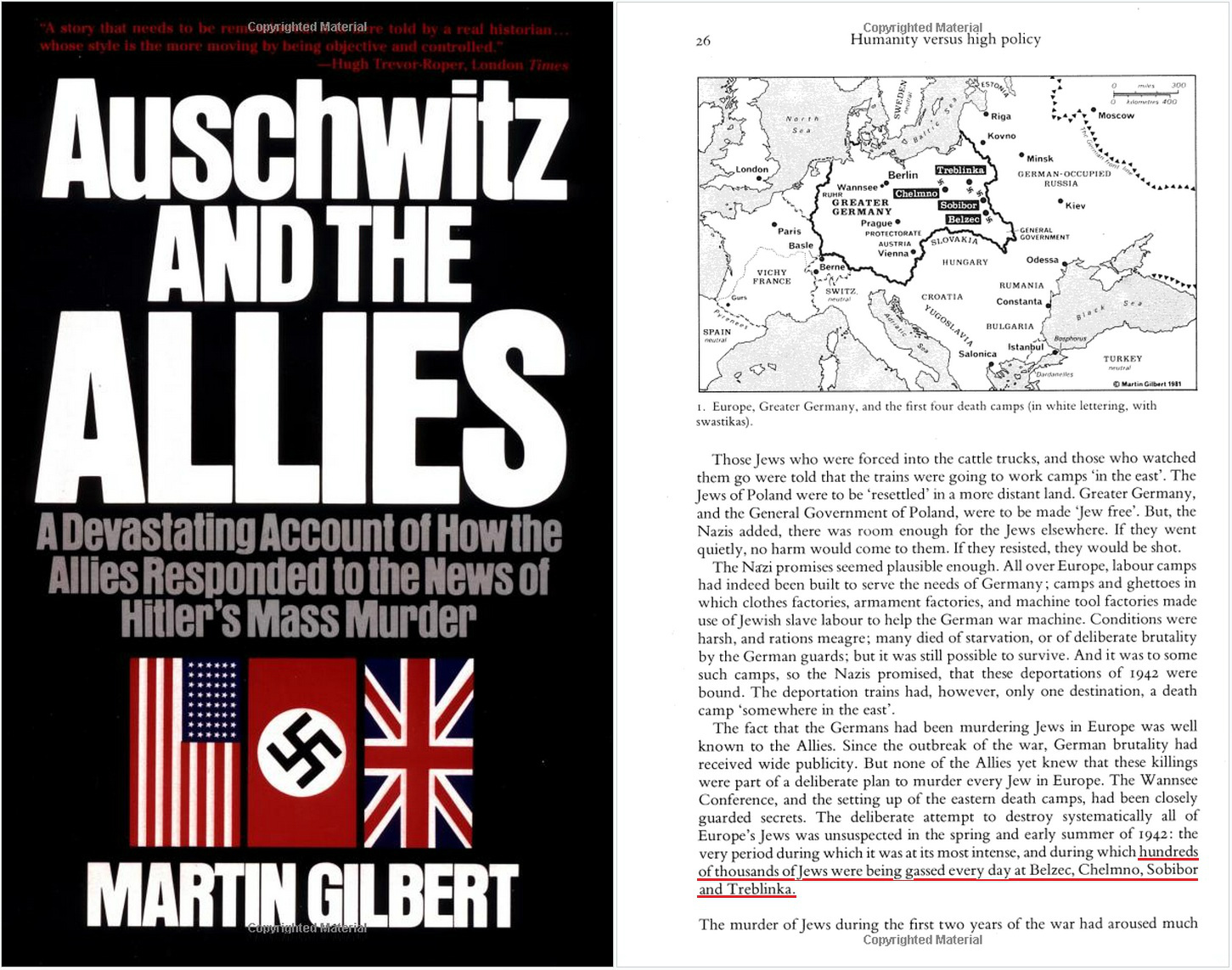 "The deliberate attempt to destroy systematically all of Europe’s Jews was unsuspected in the spring and early summer of 1942: the very period during which it was at its most intense, and during which hundreds of thousands of Jews were being gassed every day at Belzec, Chelmno, Sobibor and Treblinka."