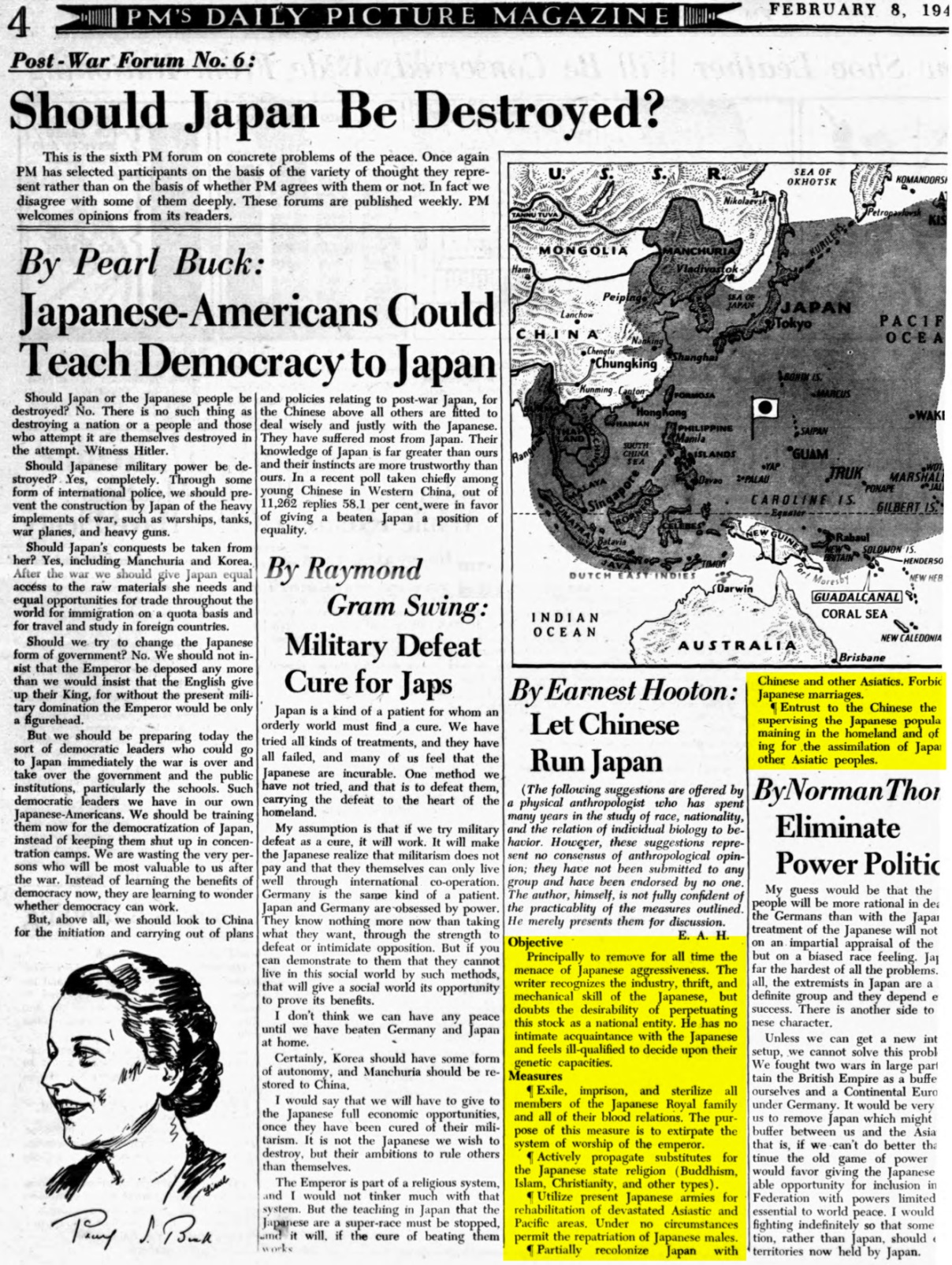 Entrust to the Chinese the task of supervising the Japanese population remaining in the homeland and of providing for the assimilation of Japanese by other Asiatic peoples."