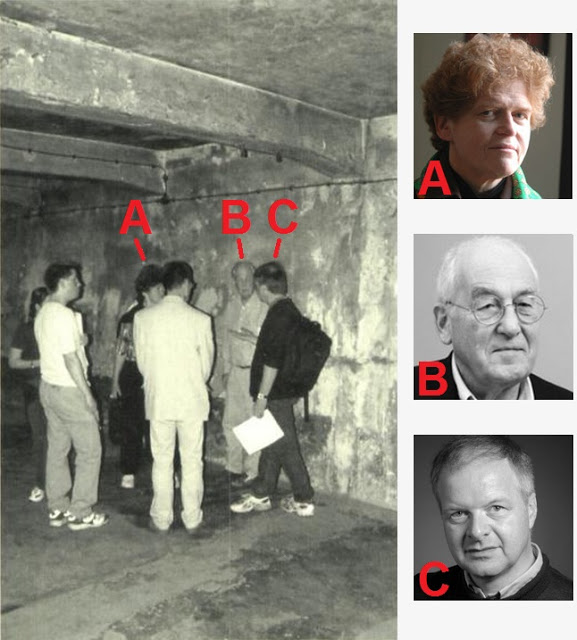 "We proceeded from the death barracks to the delousing buildings where clothing was disinfected with Zyklon B, the same gas used to kill people. This was the facility where Leuchter had found a concentration of gas residue higher than in the gas chambers. Rampton closely questioned Robert Jan about Leuchter's findings. As Rampton's questions grew more aggressive, I became decidedly uncomfortable. He seemed to be demanding that Robert Jan prove that people were murdered in the gas chambers. Finally, Rampton asked impatiently, "Isn't it time trustworthy experts did an extensive scientific study of this place?" I was stunned by Rampton's apparent conviction that we needed a scientific study to "prove" the gas chambers were killing factories. Unable to contain myself, I burst out, "Why do we need scientific studies? We have the evidence." Rampton glared at me and in, a tone that conveyed his annoyance, said, "Pardon me, but I need to know." I said nothing, but inside I was shaking. Unable to fathom why Rampton was shooting these questions at Robert Jan, I slipped to the back of the group."