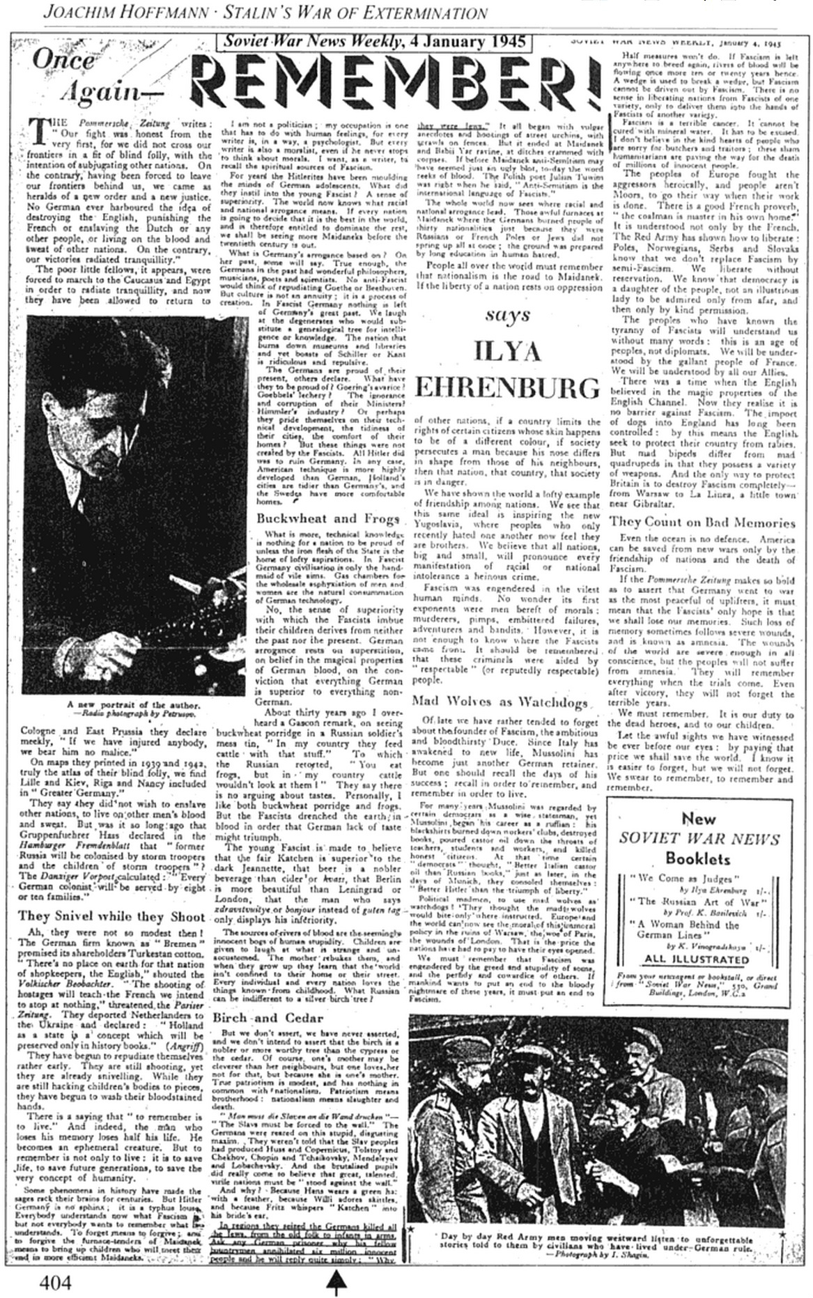 — "Once again—Remember", Soviet War News Weekly, January 4, 1945