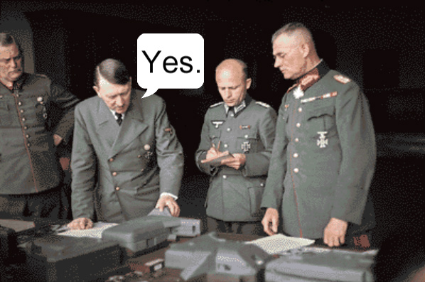 "Informed by Colonel-General Heinz Guderian that the Russians had captured Auschwitz, Hitler is recorded by the stenographers as merely acknowledging: "Yes." ("Jawohl") The Court might find it significant that he did not prick up his ears and say something like, "Herr Himmler, I hope you made sure that the Russians will find not the slightest trace of what we have been up to." (Or even, "I hope you managed to get those holes in the roof slab of Krema II cemented over so there's no trace, before you blew it up." source