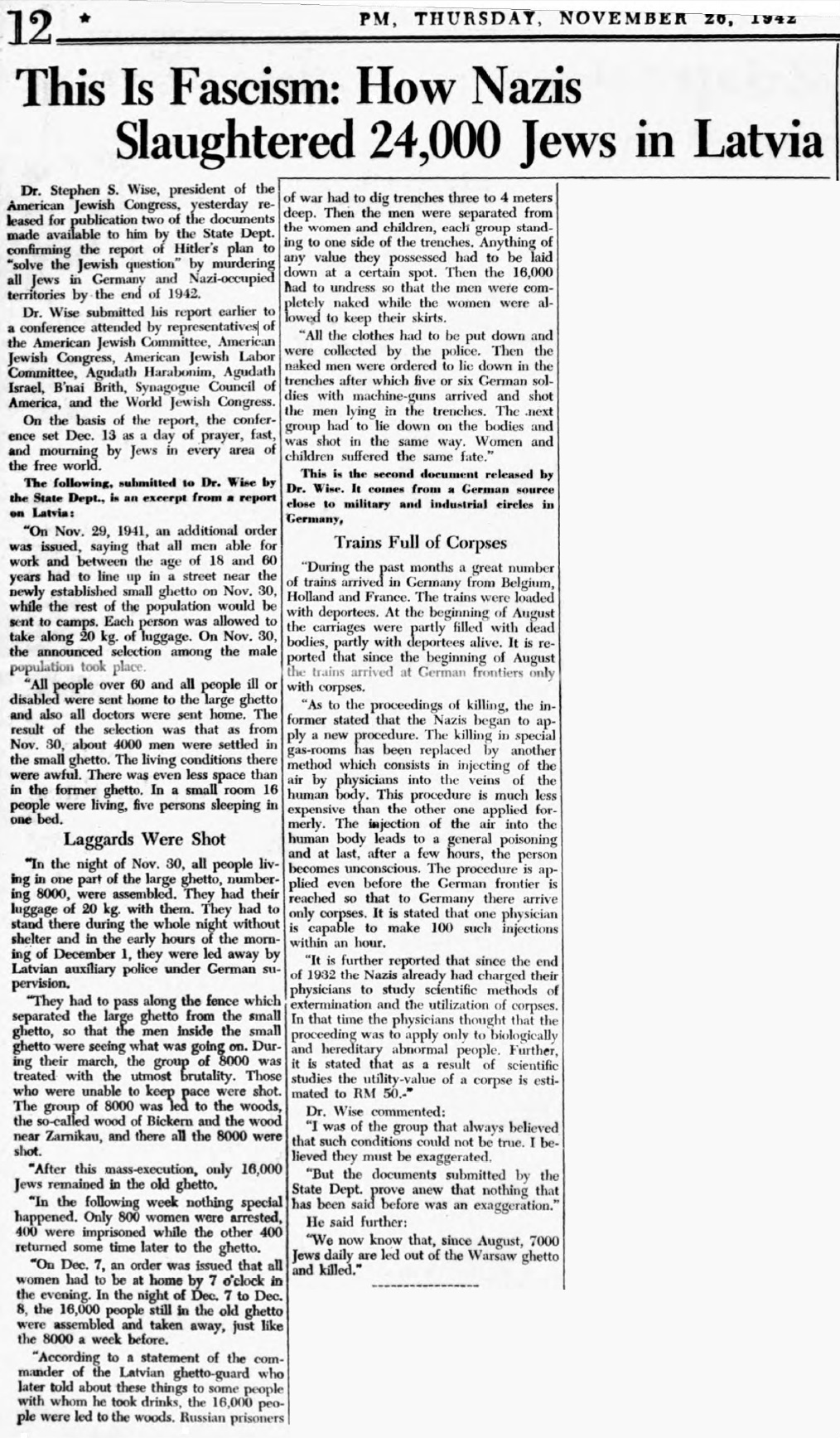 Zionist Rabbi Stephen "Six Million Jews" Wise made public two