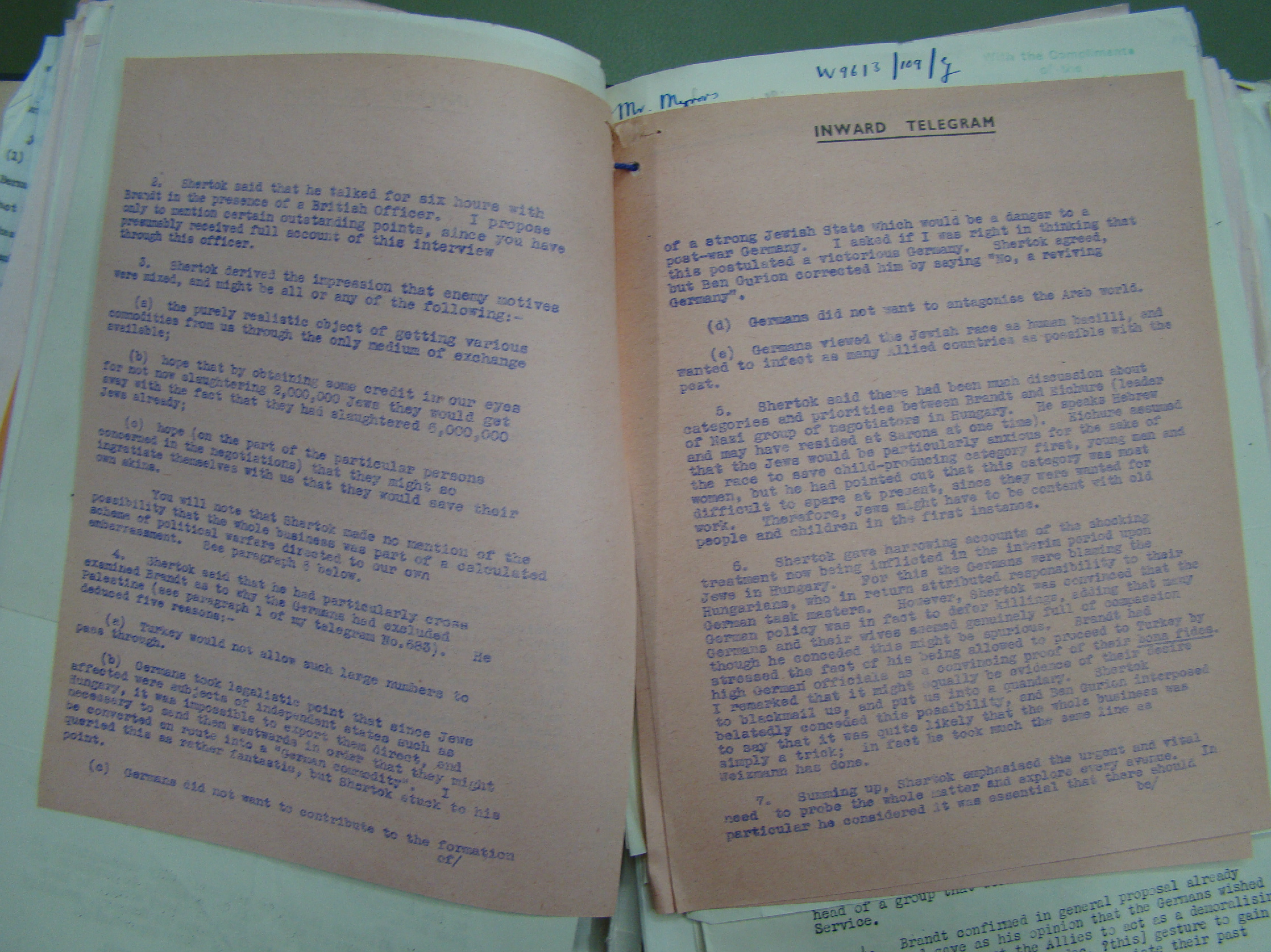 "3. Shertok derived the impression that enemy motives were mixed, and might be all or any of the following:-