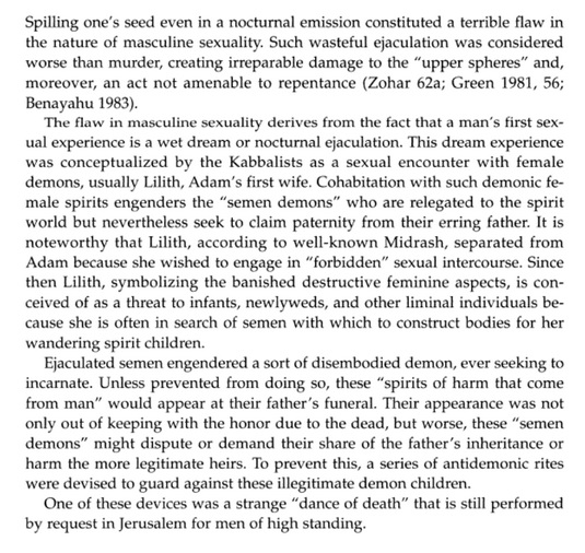 semen engendered a sort of disembodied demon, ever seeking to incarnate.