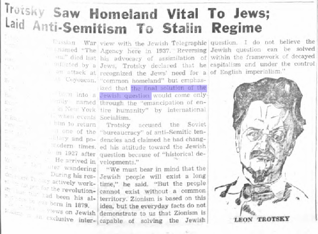 "The Final Solution of the Jewish Question" is a direct quote from the Zionist manifesto of 1897.