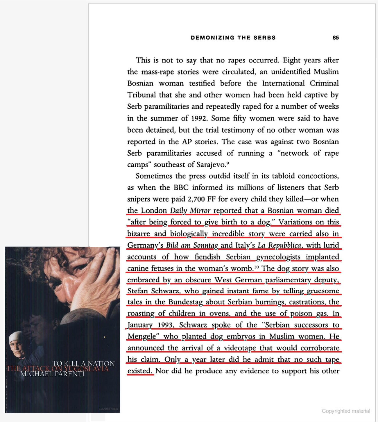 A good example of recent 'atrocity propaganda' stories from the Balkan conflicts of the 1990s.