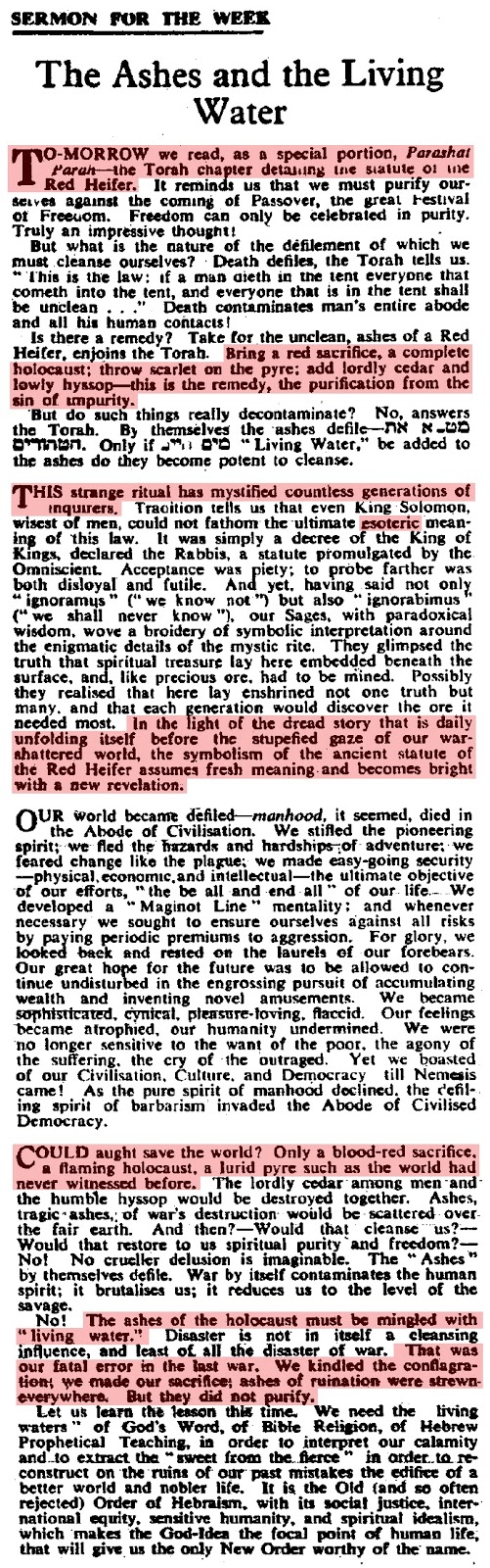 Below is an extremely cryptic "Sermon For the Week" I found in The Jewish Chronicle.