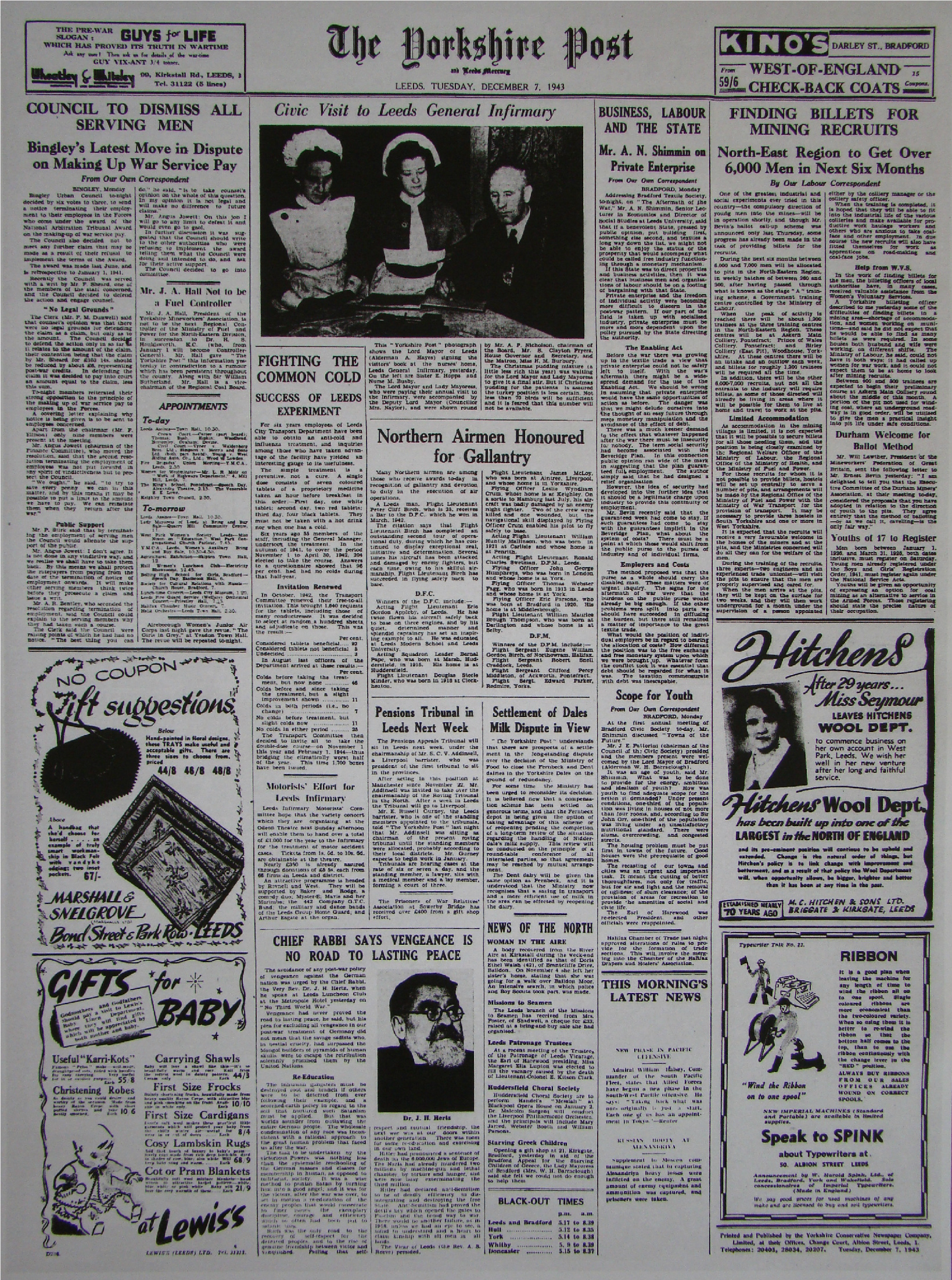 The Yorkshire Post and Leeds Mercury, Tuesday, December 7, 1943, p.1.