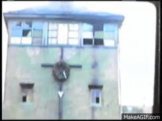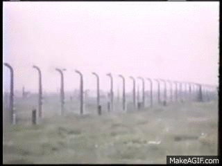 The above gifs feature some pretty amazing footage of Auschwitz I and II (Birkenau) that was supposedly shot in 1945 by the Russian-born American Jewish tycoon and Zionist leader, Fred Monosson. However, the film includes footage of someone—probably Monosson himself—standing upon the gallows on which Rudolf Hoess was hanged. That proves this footage must have been shot after April 16, 1947. Although fairly soon after, as Crematorium I still has two doors on the Westerly-end, one of which the Soviets half-bricked-up and converted to a window.