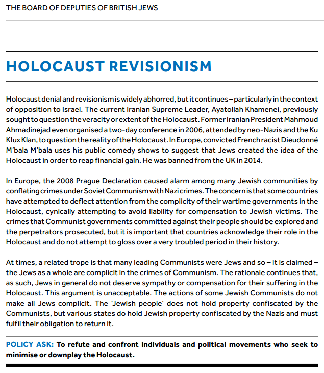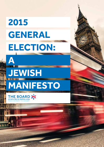 This is the cover of the Board of Deputies of British Jews 2015 General Election Manifesto, and is "aimed at informing both existing and prospective members of the UK Parliament about Jewish interests and concerns."