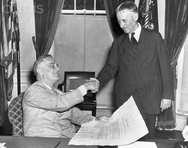 President Franklin Roosevelt and Secretary of War Henry L. Simpson