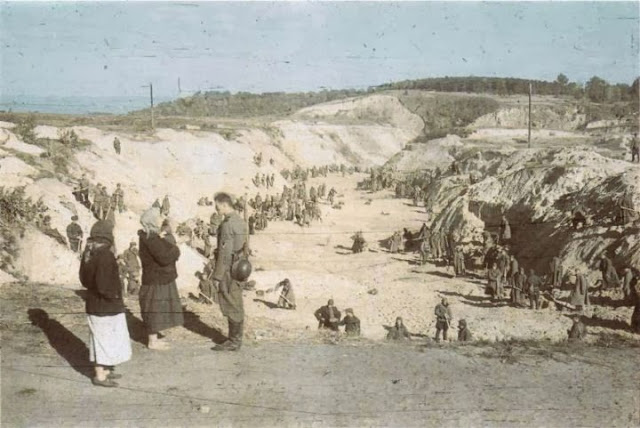 Burying 33,771 - 169,000 Jews in the Babi Yar ravine in early October 1941.Photo lifted without permission from littlegreyrabbit