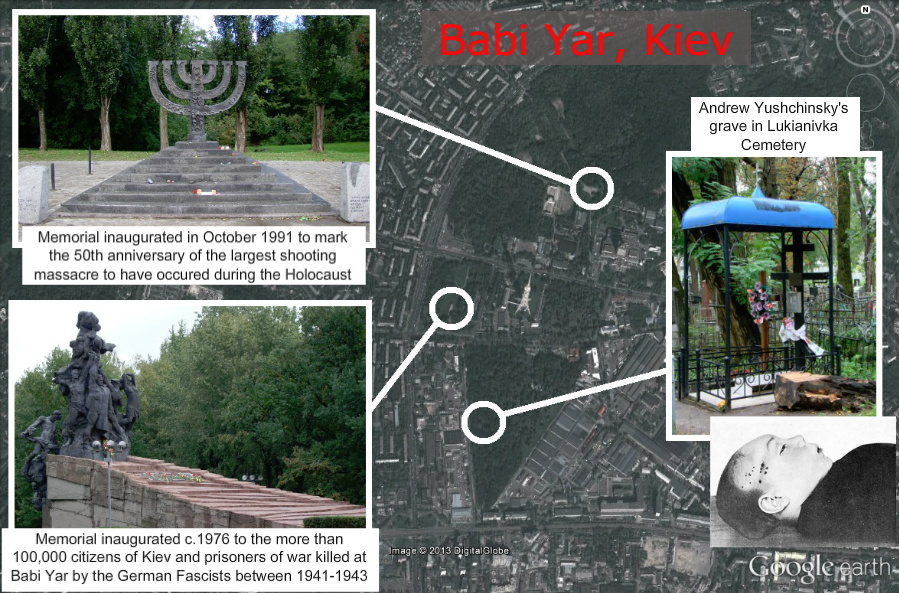Shortly before my September 2013 trip to Kiev I leant by chance that Andrew Yushchinsky, the 13 year old boy whose murder in March 1911 prompted the famous ritual murder trial, was buried close to the ravine named Babi Yar in the Ukrainian city of Kiev. The ravine in which the Germans are claimed to have killed anywhere up to 200,000 people, mostly Jews, during the Second World War.