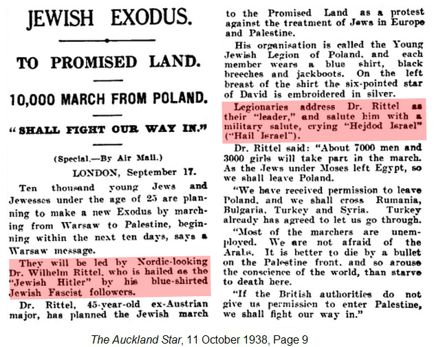 I've a hunch that this "Nordic-looking" "Jewish Hitler", Dr. Wilhelm Rittel, is the man on the right in the photograph below (photo source), which was taken in Warsaw between 11-16 September, 1938, at the 3rd World Congress of Betar, the Fascist sympathising Revisionist Zionist youth movement.
