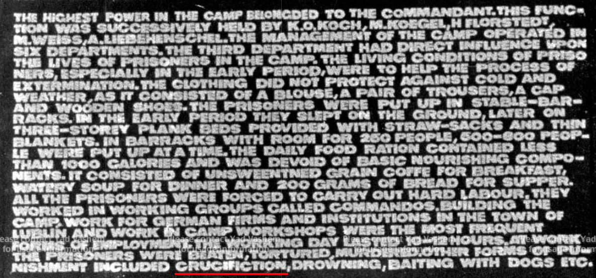 An enlargement of the English text shows that the Germans punished the prisoners by "crucifiction."