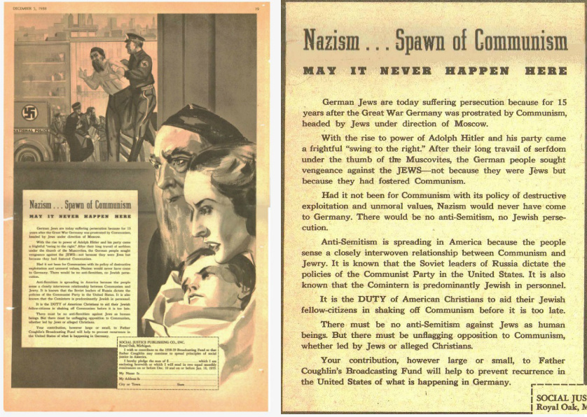 This is an advert which appear in the December 5, 1938 edition of Social Justice, the magazine founded by the American "antisemitic" Catholic priest Charles Coughlin. The full magazine can be viewed through this blog post by 'Pathteacher' where I found the above.