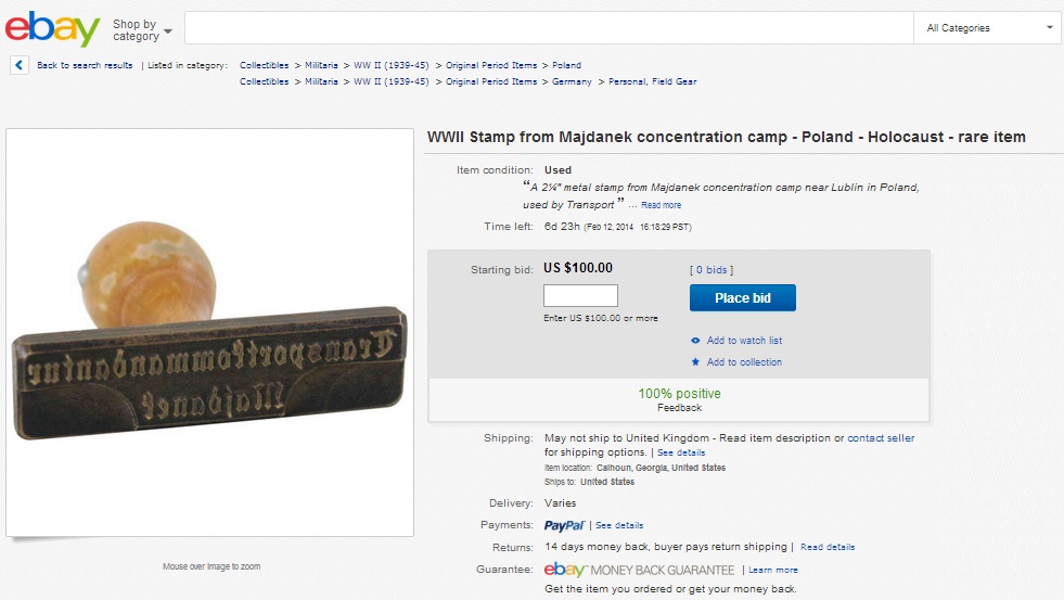 Below is an item up for auction on Ebay which is purportedly an original "Transportkommandantur (Transport Headquarters) Majdanek" stamp used at the Lublin camp during WWII.