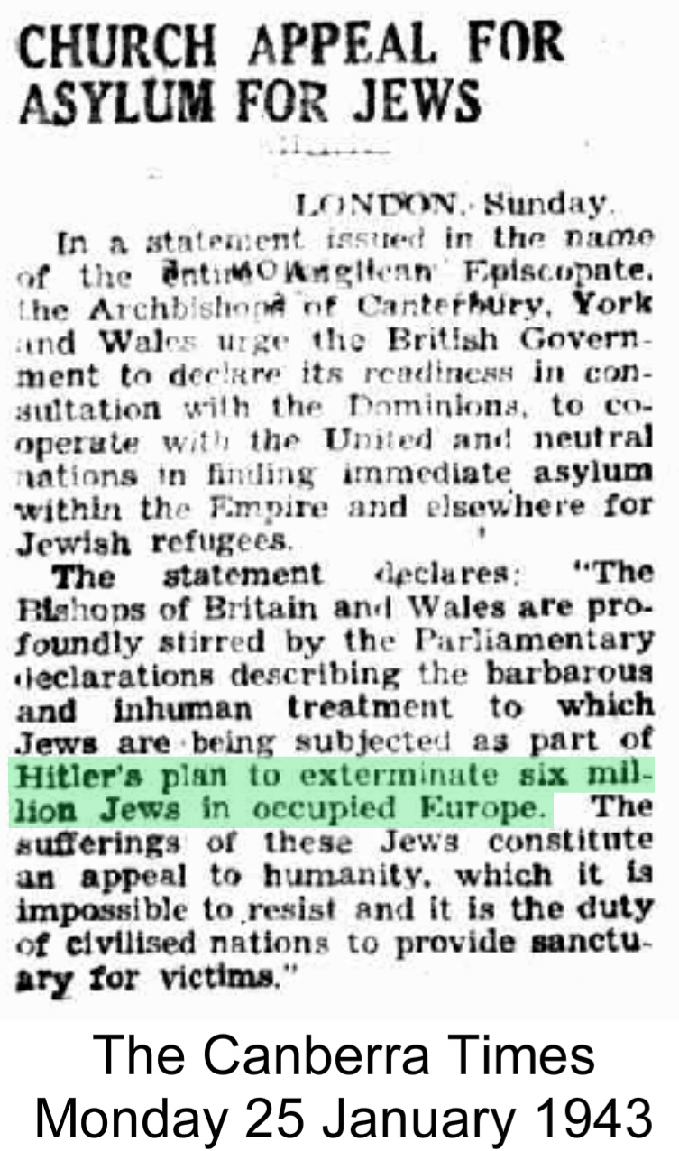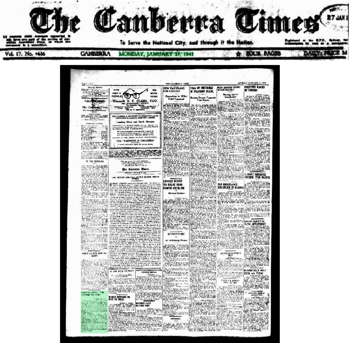 The Canberra Times of Australia, reported on Jan 25th,1943