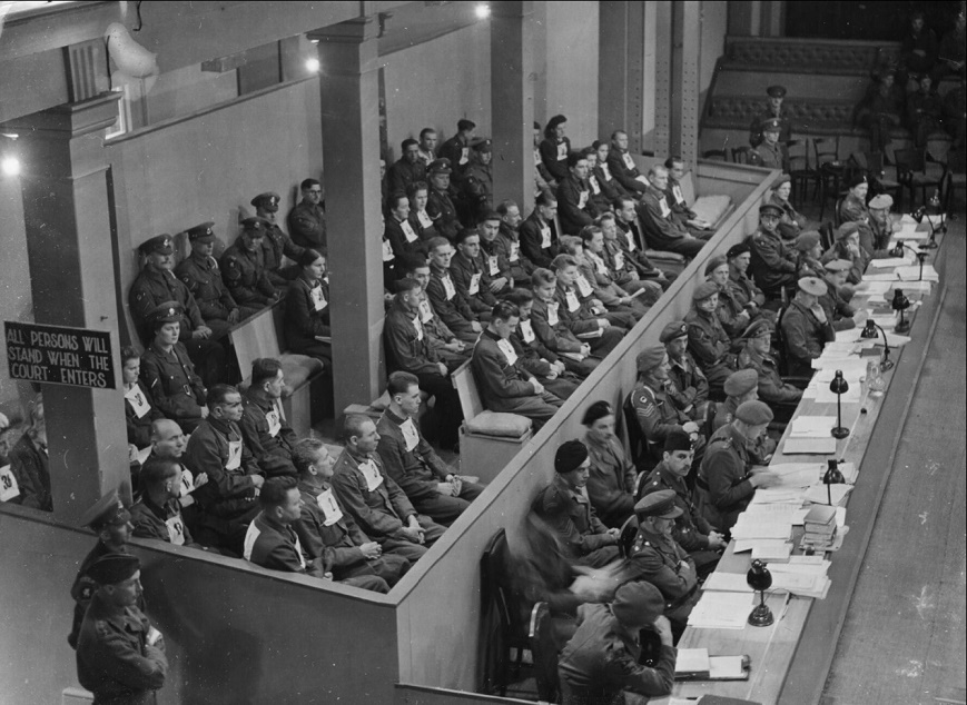 The courtroom of the first Belsen Trial, Sept 17, 1945, where cannibalism-witness Dr. Fritz Leo participated.