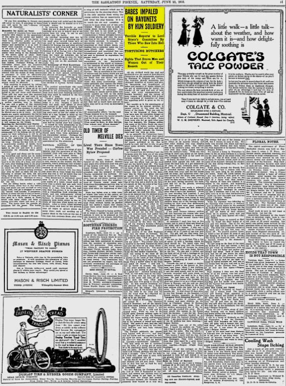 An article from the Saskatoon Phoenix from 1915 states that the Germans were: