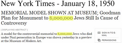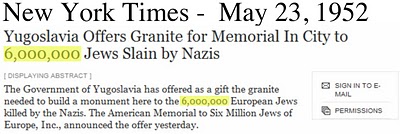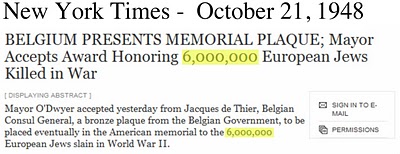 Yeah, sure, that's why it was being reported in the New York Times & stated in Congress months before the end of WW2 (details). A few reports of very early memorials to the Kabbalistic 6,000,000