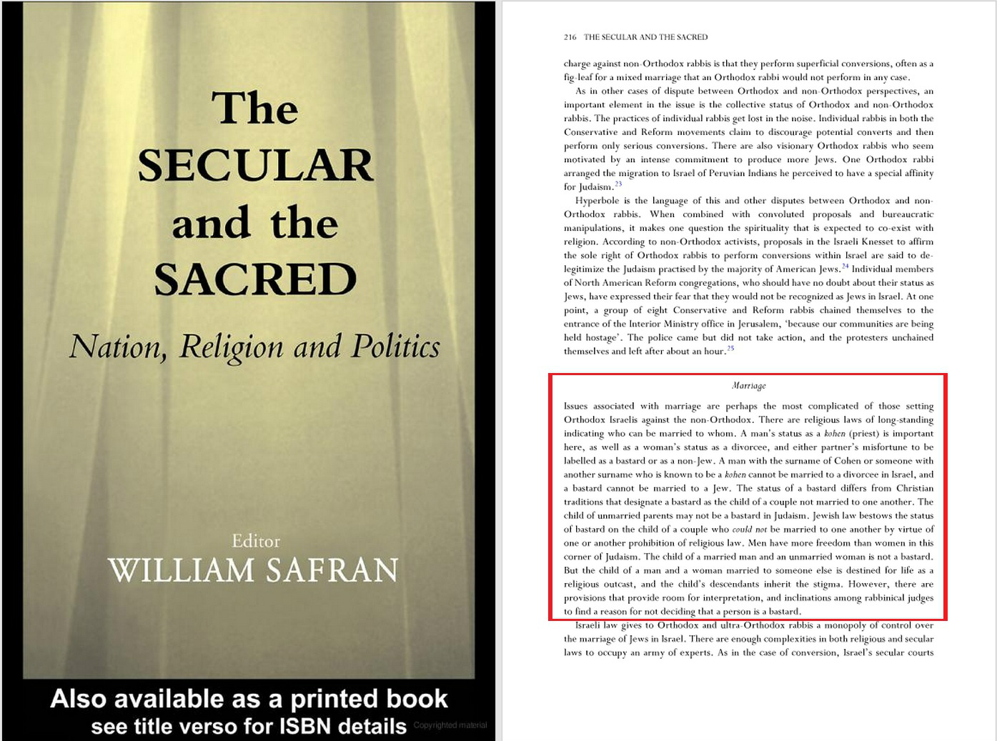 William Safran. The Secular and the Sacred: Nation, Religion, and Politics (2003) p.216