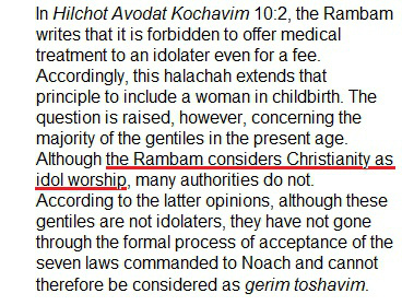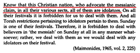 girls aged 3, stated in his Mishnah Torah that all forms of Christianity is idolatry: