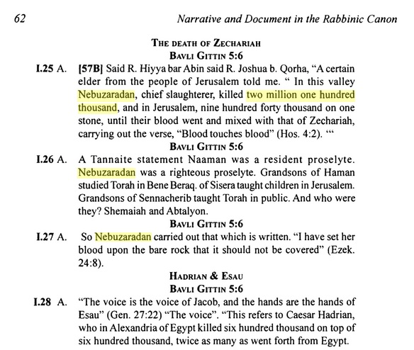 Addendum - by this Site:Another translation of Gittin 57B from Narrative and Document in the Rabbinic Canon: The Two Talmuds, also by Jacob Neusner: